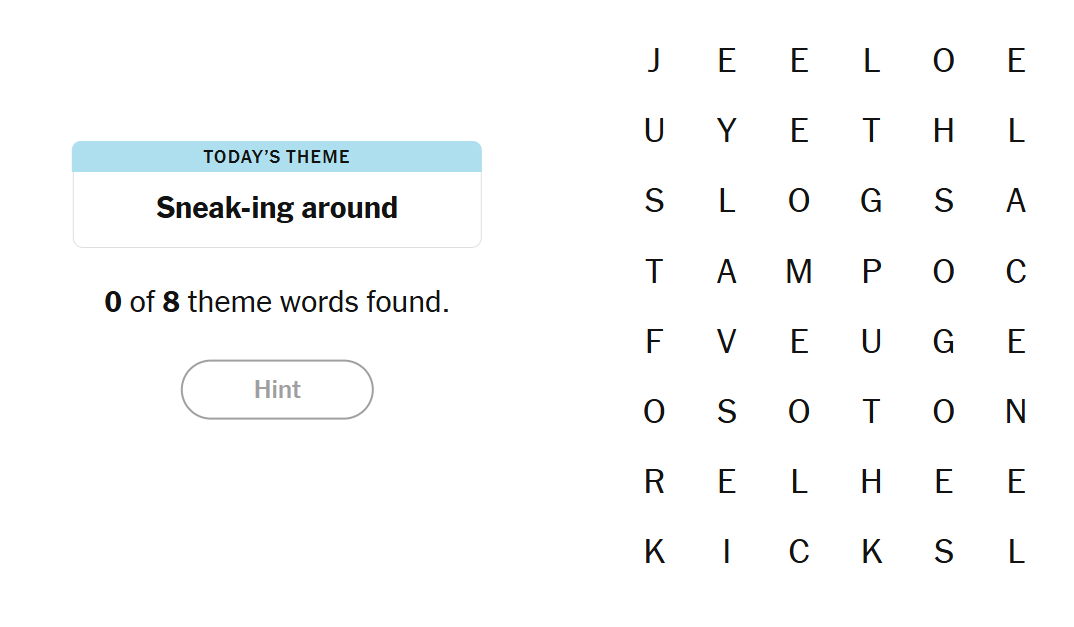January 20, 2026 NYT Strands Theme: “Sneak-ing around”